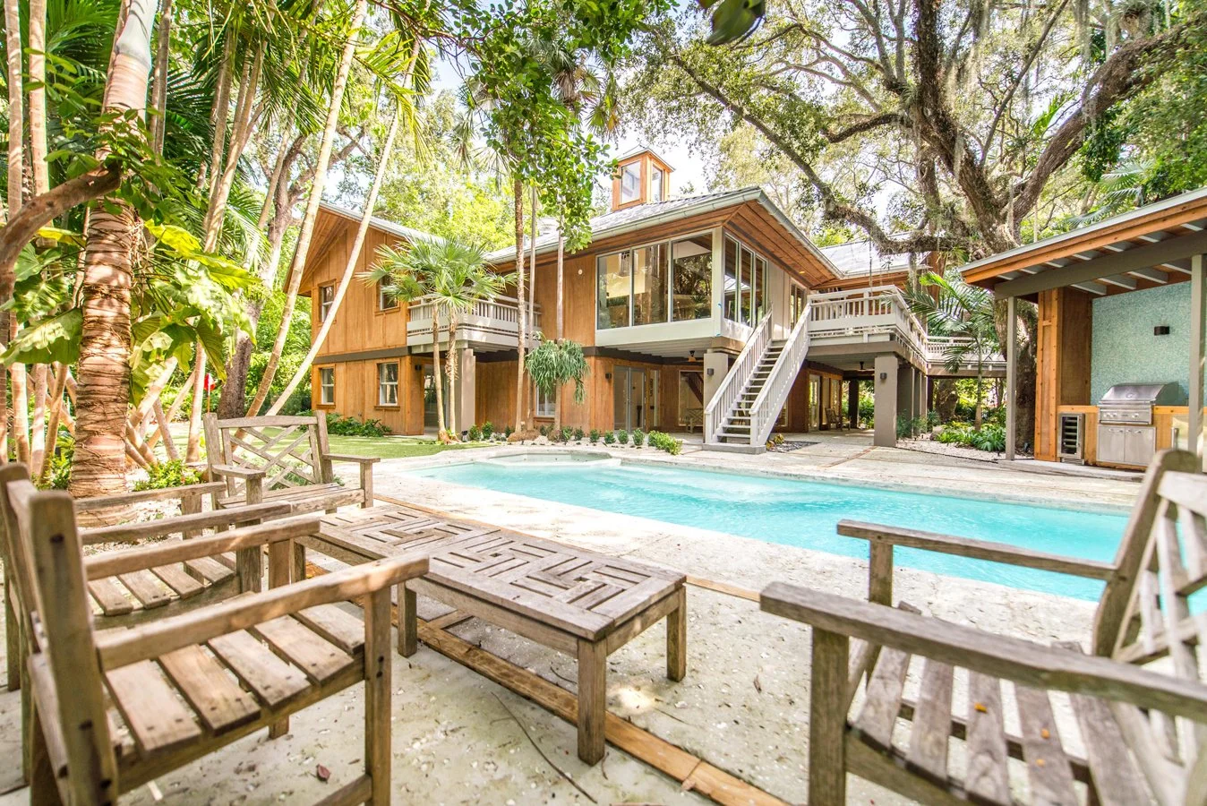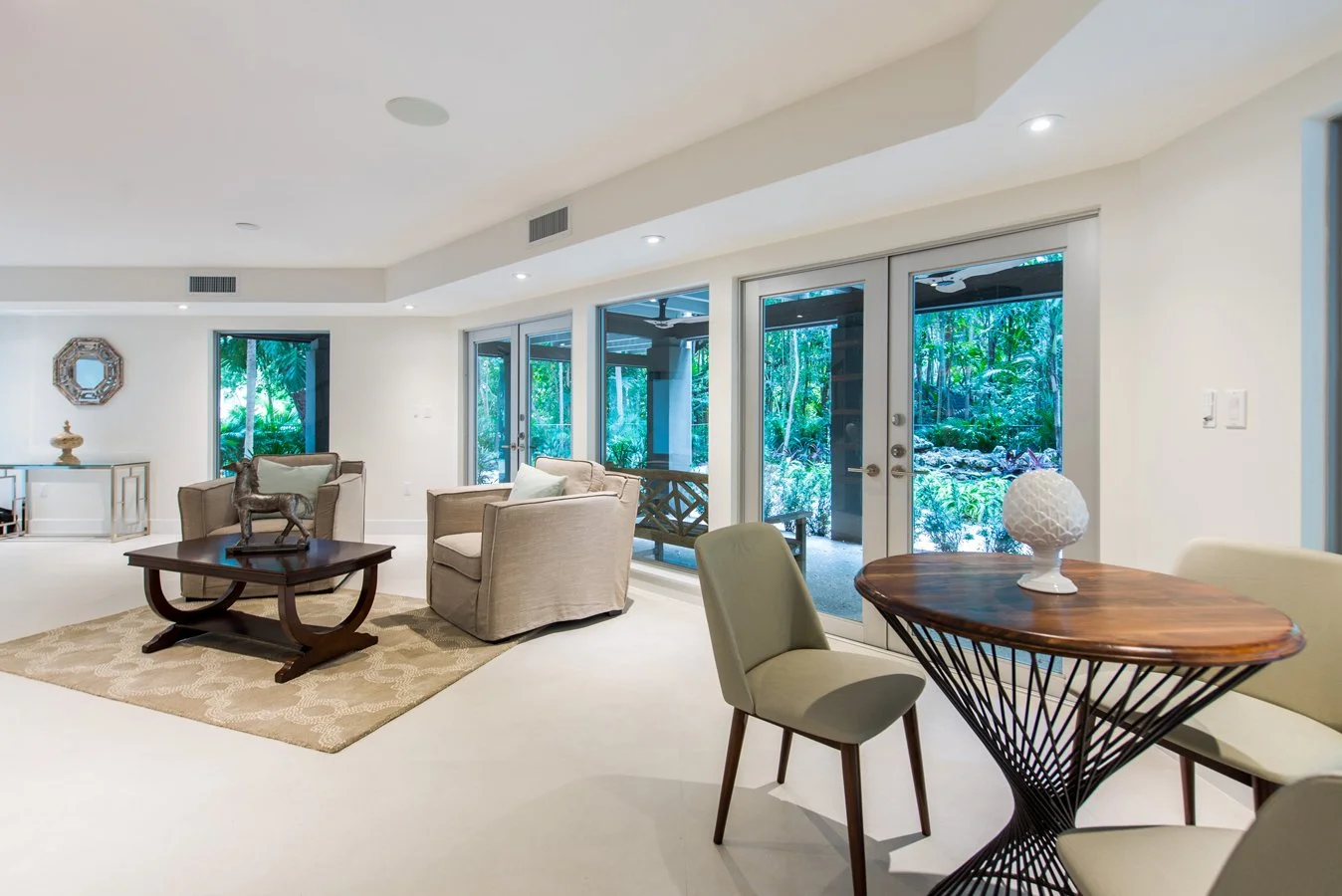 The ‘Tree House’ in Coconut Grove was designed by Peter Augustus Jefferson, FAIA in 1985. Mr. Jefferson was an award winning architect; he started his practice in Miami where he designed several homes inspired by the Florida Cracker house and others with a Sub-Tropical Modern flair inspired by Frank Lloyd Wright, Paul Rudolph and Ralph Spencer Twitchell. The house at Camp Biscayne [Tree House] is nestled in a tropical hardwood Hammock, surrounded by large mature live oaks and saw palmettos. The home seems to sit on stilts, with most living spaces on a second level with cedar batten vaulted ceilings culminating on a clerestory balcony lookout. SOW Design Studio was commissioned in 2013 to add 1,500 s.f. and reconfigure the ground floor to become better integrated with the rest of the home. Staying respectful to the original design style, we opened an atrium leading up to the second (main) floor, adding a grander dimension to the space. We added two master bedrooms, bathrooms a cabana bath and updated the materials throughout, all without disturbing the lush surroundings.